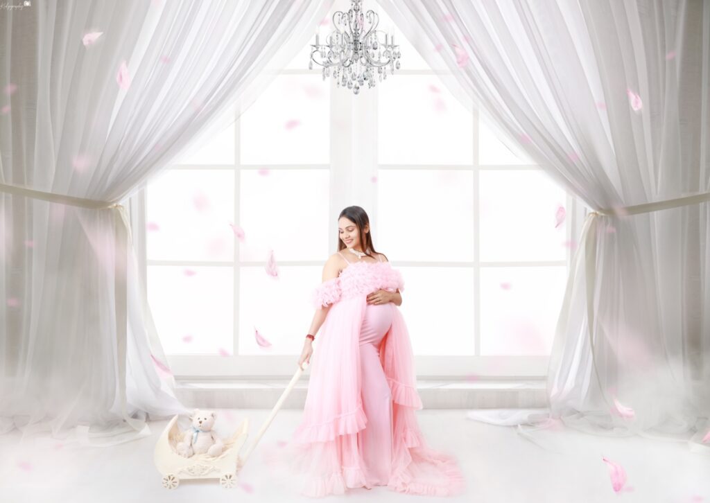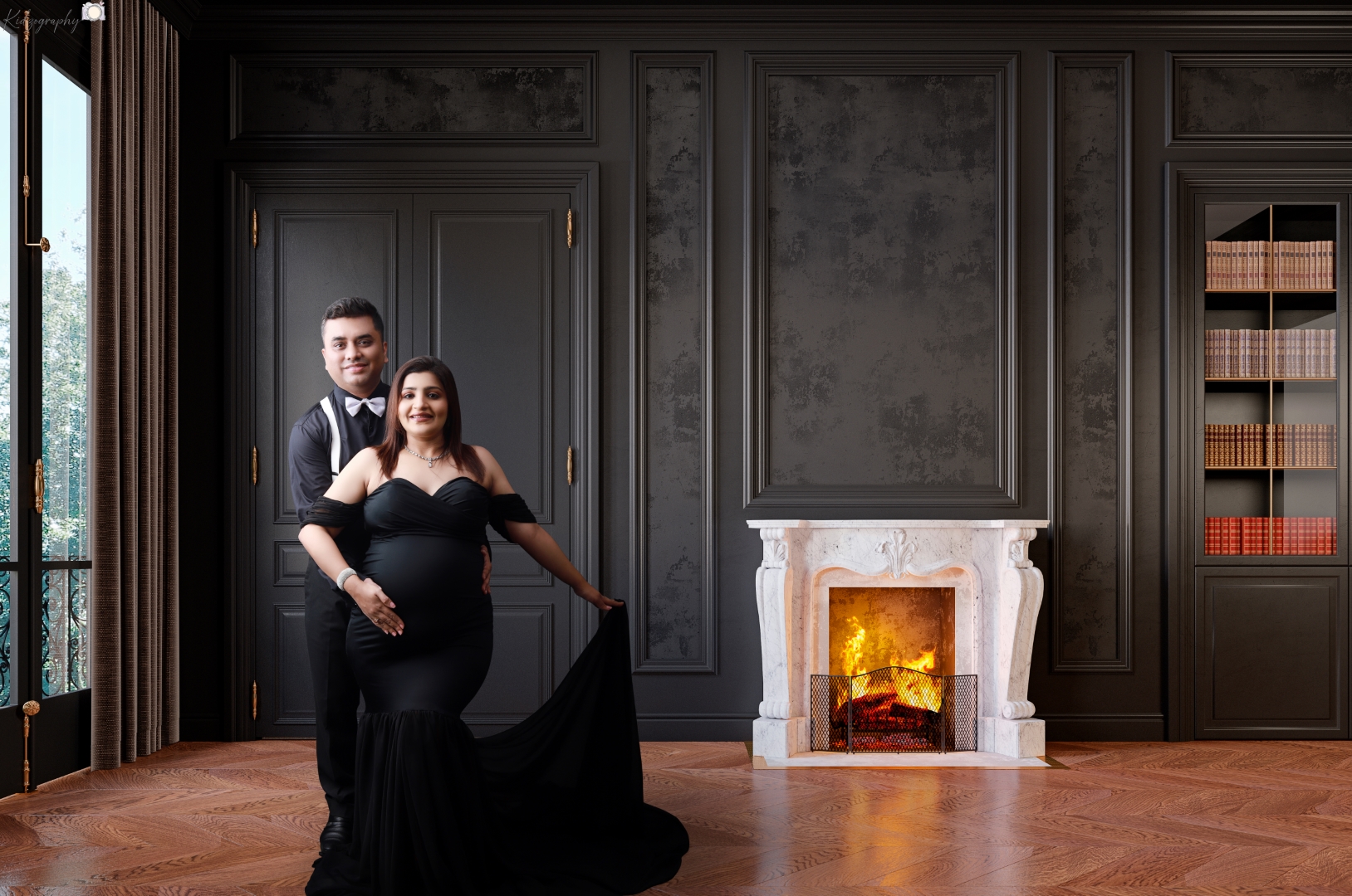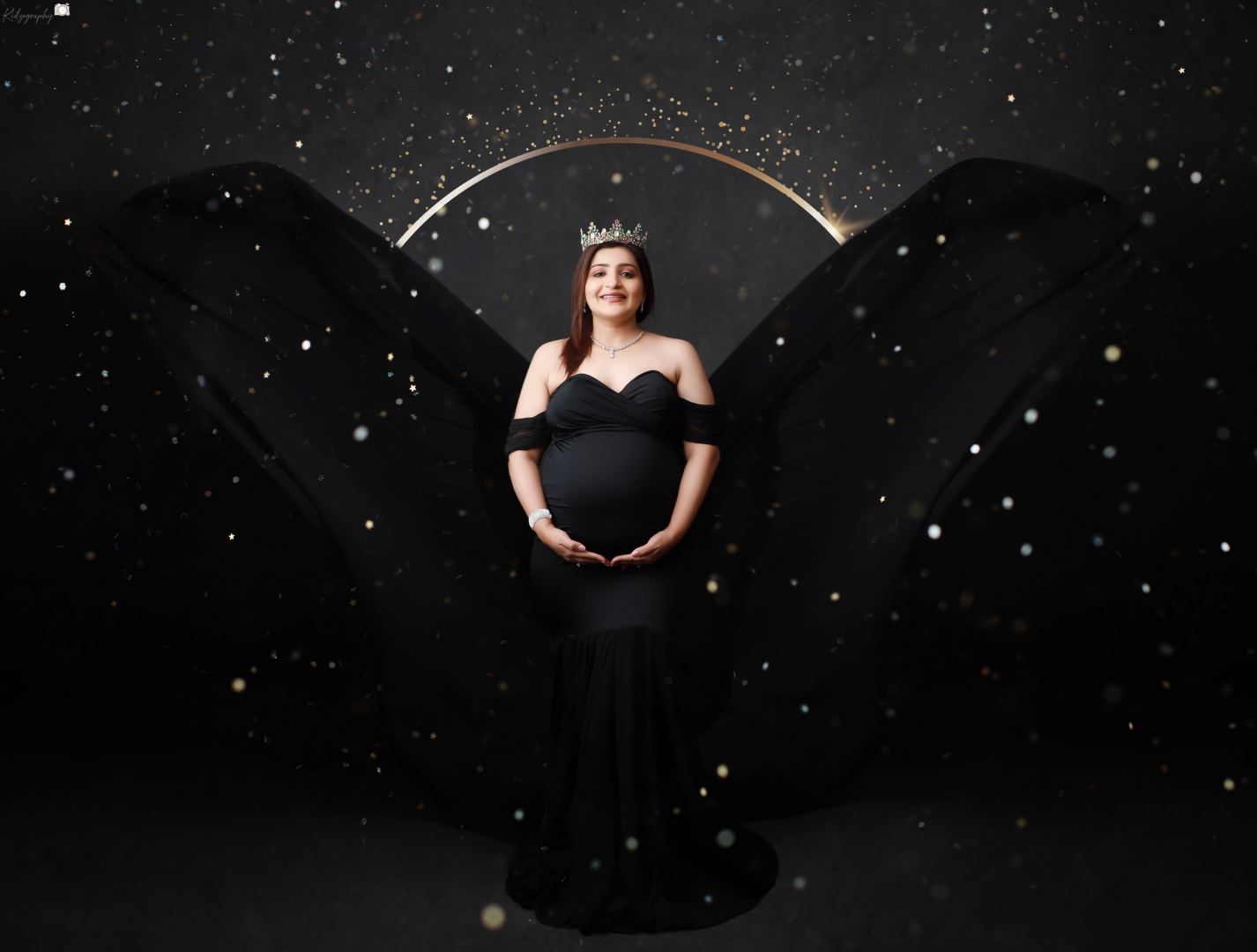 To capture your beautiful maternity journey, we offer an extensive range of premium maternity gowns and maternity dresses along with fashion jewellery and accessories. We make sure the mom-to-be feels like a queen. We even offer blazers for men, along with men’s accessories like bow ties and suspenders. The perfect time to do a pregnancy photoshoot is around 7-8 months. We’re a renowned maternity, newborn and baby photography studio in Mumbai.